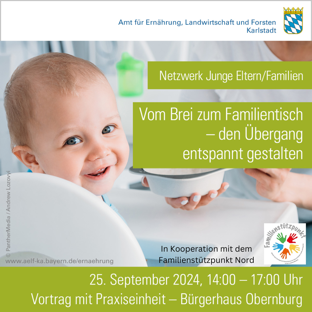 Wir freuen uns für euch am Mi. 25.09.2024 von 14-17 Uhr im B-OBB (Bürgerhaus Obernburg) eine Veranstaltung mit der Referentin Frau Kunz des Netzwerk Junge Eltern/Familien (Amt für Landwirtschaft, Ernährung und Forsten Karlstadt) anbieten zu können 😊. Diese beinhaltet sowohl einen theoretischen als auch einen ganz praktischen Teil 🍵🥕🍏🍽🤗.